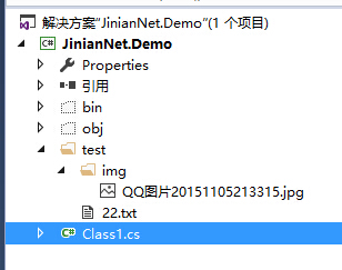 而在VS2015中,虽然子文件夹及文件均已复制到解决方案目录下面,但是在解决方案中,我们只能看至文件夹本身,无法找到子文件夹与文件夹内的文件——当然也无法展开该文件夹了。